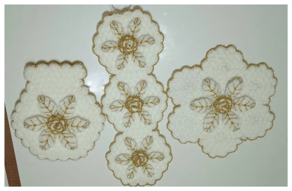 Altın işlemeli, çiçek desenli ve dalgalı kenarlı beyaz Lif Takımı