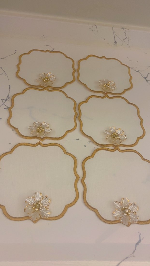 Altın rengi, işlemeli çiçek detaylı modern klasik kahve peçetesi,sunumluklar.