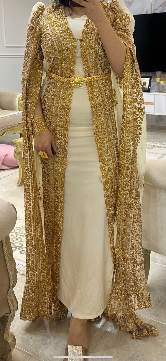 Altın İşlemeli Uzun Kadın Kına Elbisesi