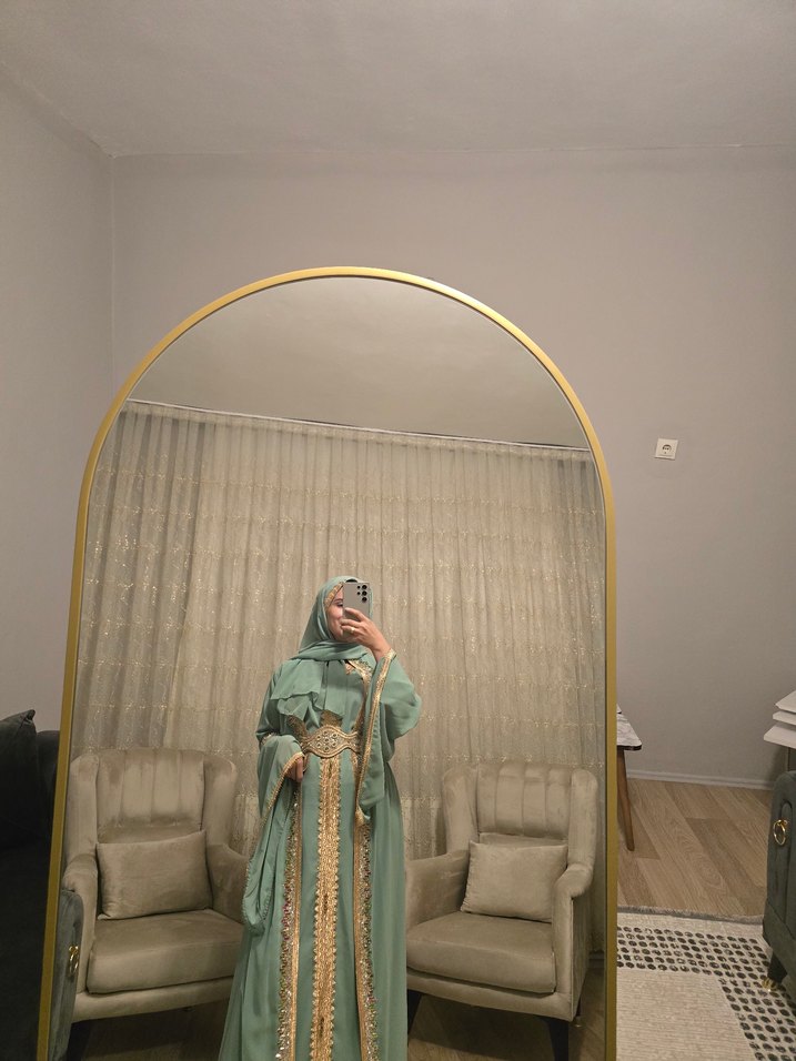 Altın İşlemeli Uzun Tesettür kaftanElbise