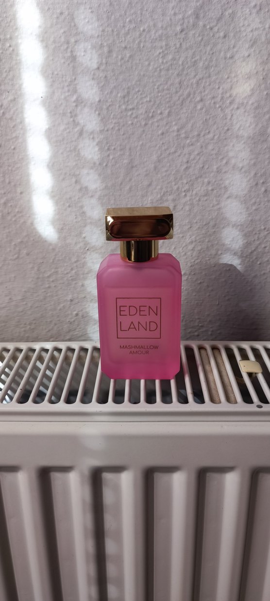 Altın kapaklı ve pembe mat cam şişeye sahip kadın parfümü, şıklık ve sadeliği bir arada sunar. Cok az kullanildi. Sekerli koku.