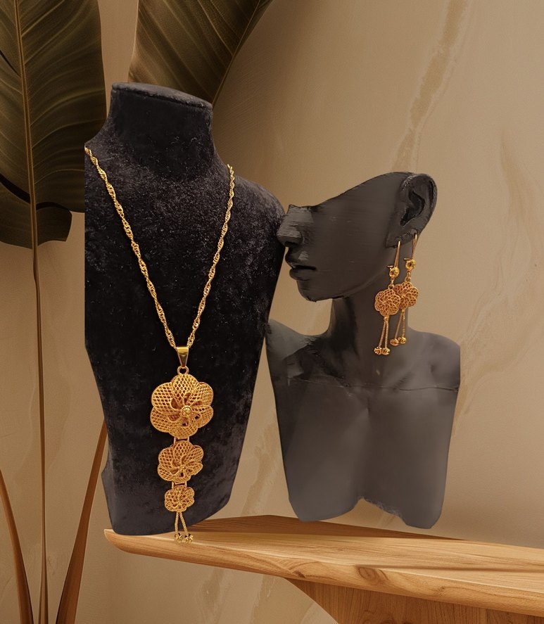 Etnik desenli, zincir detaylı altın renkli kadın takı seti, klasik ve göz alıcı tarzıyla günlük kullanım için uygundur.