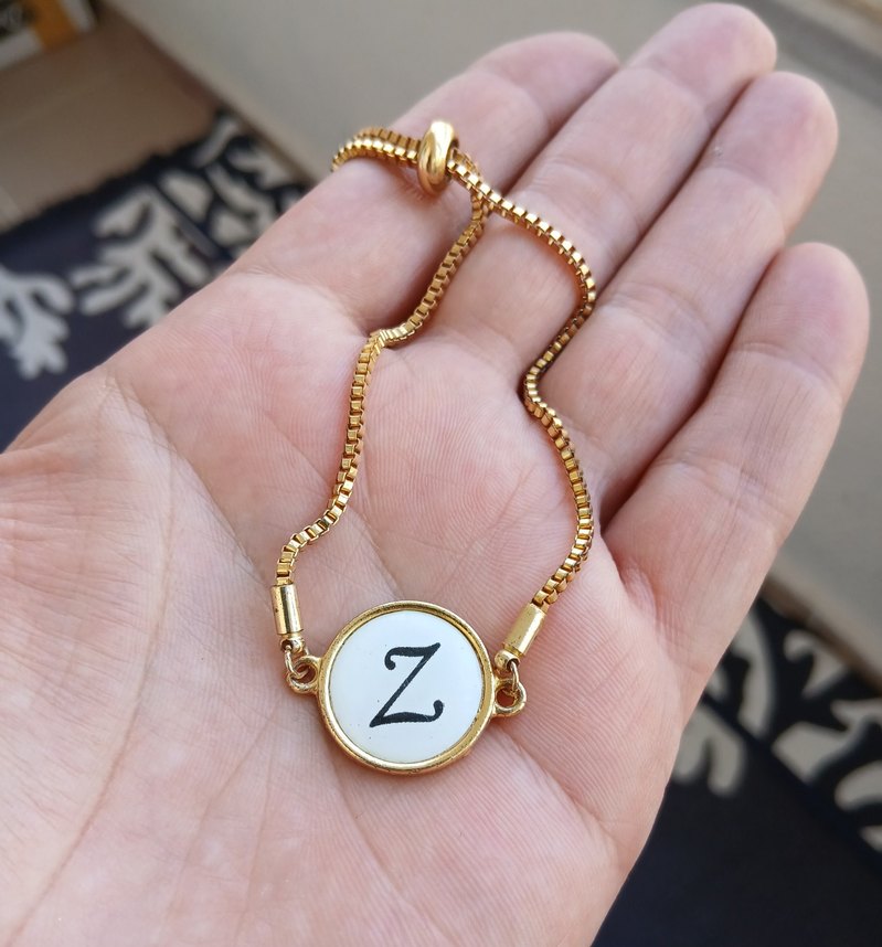 Altın renkli zincir detaylı, üzerinde 'Z' harfi bulunan renkli baskılı yuvarlak madalyonlu kadın el zinciri. ️