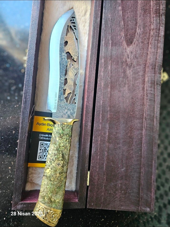 N690 çelik, 3D kabartma gravür, 24 ayar altın kaplama, imzalı sertifikalı efsane bir kolleksiyonluk model. Kutusu, standı ve sertifikasıyla gelecek. Kabze, gravür işlemeli çift pirinç balçaklı, Japon stabilize.