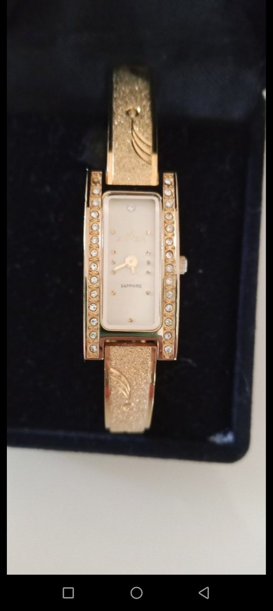 Altın kaplama,safir cam,taşlı,ince bileklik model kordon, nostaljik saat.