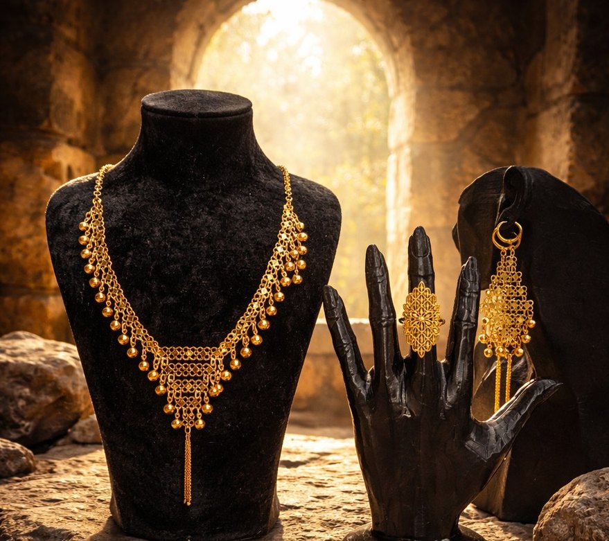 24k altın kaplama küpe yüzük ve kişniş kolye set