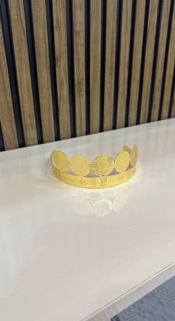 Parlak altın renkte, işlemeli taç özel günlerinizde kullanabilirsiniz kararma yapmaz
