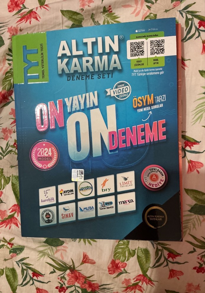 Altın Karma 2024 TYT deneme seti, ÖSYM tarzı yeni nesil sorular ve video destekli 10 dene me testi içerir. Aydın Yayınları’nı çözdüm sadece