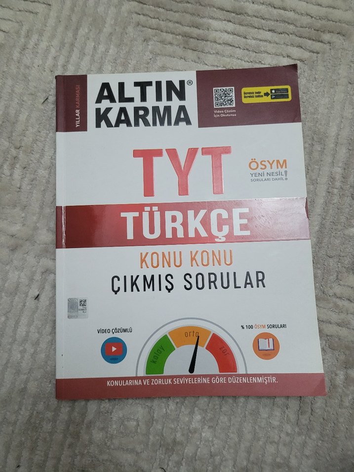 Altın Karma TYT Türkçe kitabı, konu konu çıkmış sorular ve video çözümleri ile zorluk seviyelerine göre düzenlenmiştir.