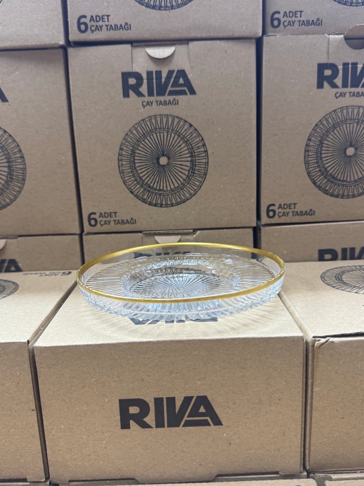 Altın işlemeli kenarları ve modern klasik işleme desenleriyle 6 adet çay tabağı seti.