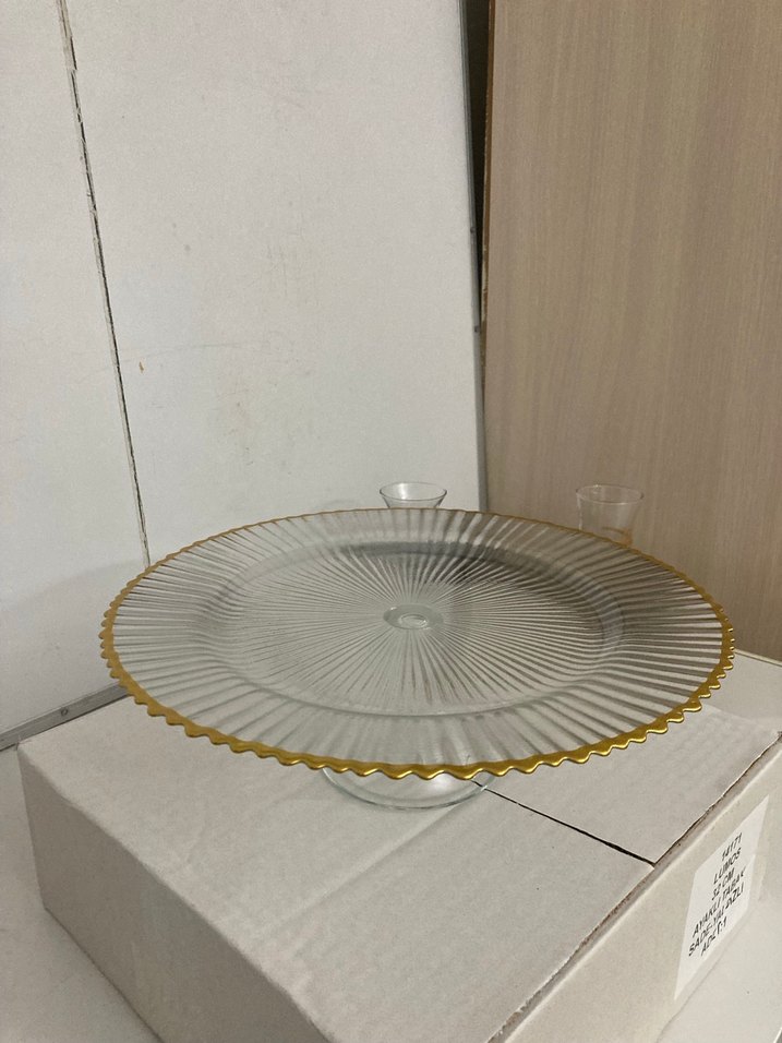 Altın kenarlı, desen içermeyen vintage tarzda cam servis tabağıdır. Sofralarınıza zarif bir dokunuş katar. ️