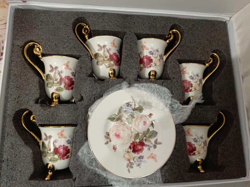 Altın Kulplu Çiçek Desenli Porselen Fincan Takımı