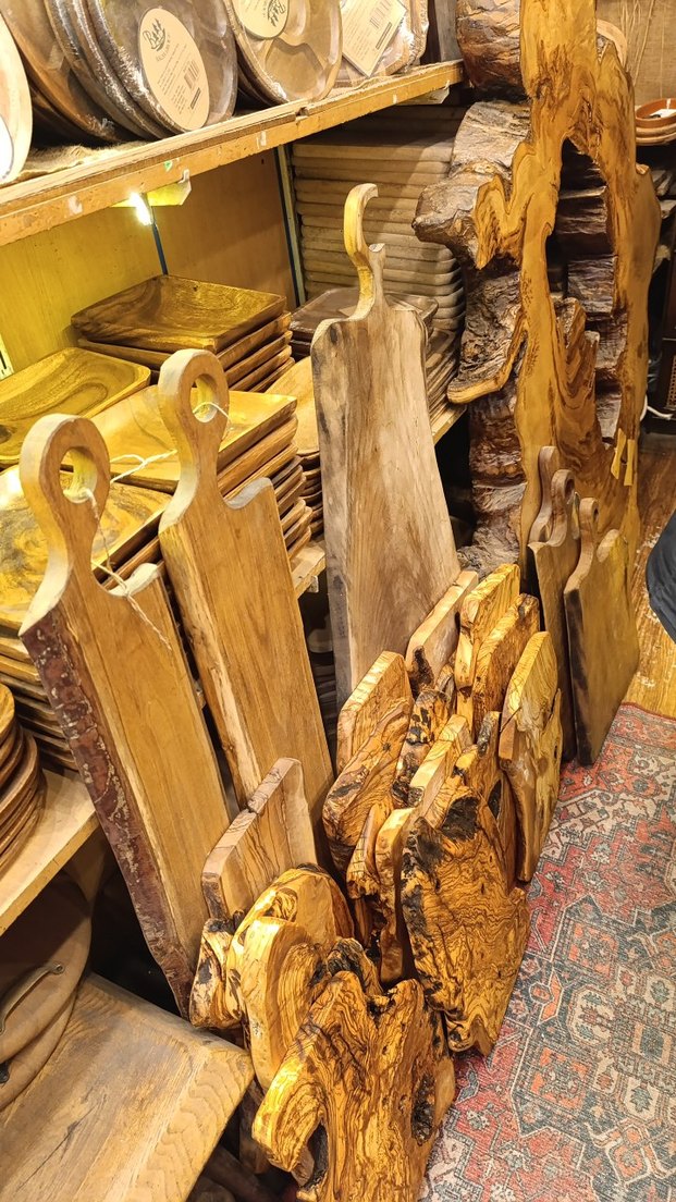 Parlak altın renkli, doğal dokulu ahşap kesme ve sunum tahtaları, mutfakta kullanıma uygundur. ️