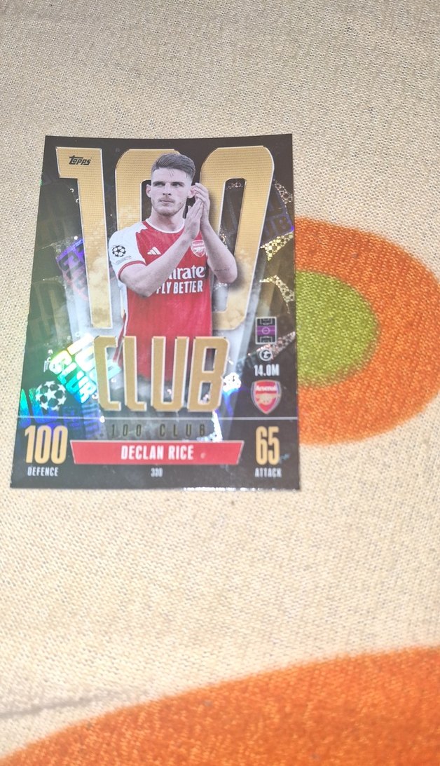 Parlak altın renkte, Declan Rice figürlü ve büyük rakamlı rozet, rock punk tarzına uygun.
