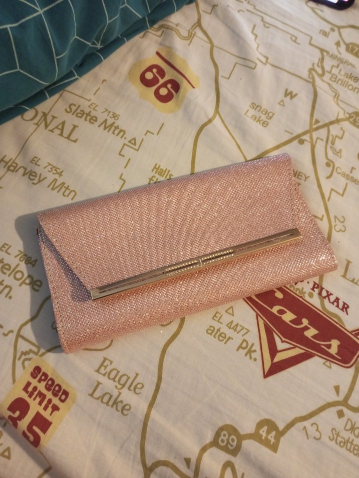 Altın renkli, parlak sentetik kumaştan yapılmış, ışıltılı detaylara sahip modern klasik tarzda kadın clutch çanta. Romantik akşamlar için uygun, baskılı deseni ve şık metal aksanı bulunur.✨