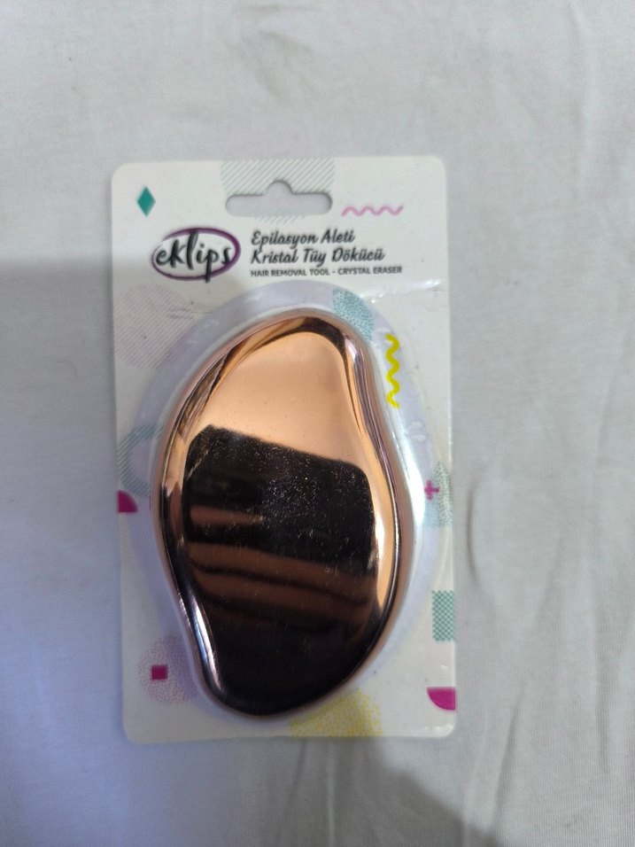 Parlak altın renkli kristal epilasyon aleti, pürüzsüz yüzeyiyle etkili tüy temizliği sağlar. ✨
