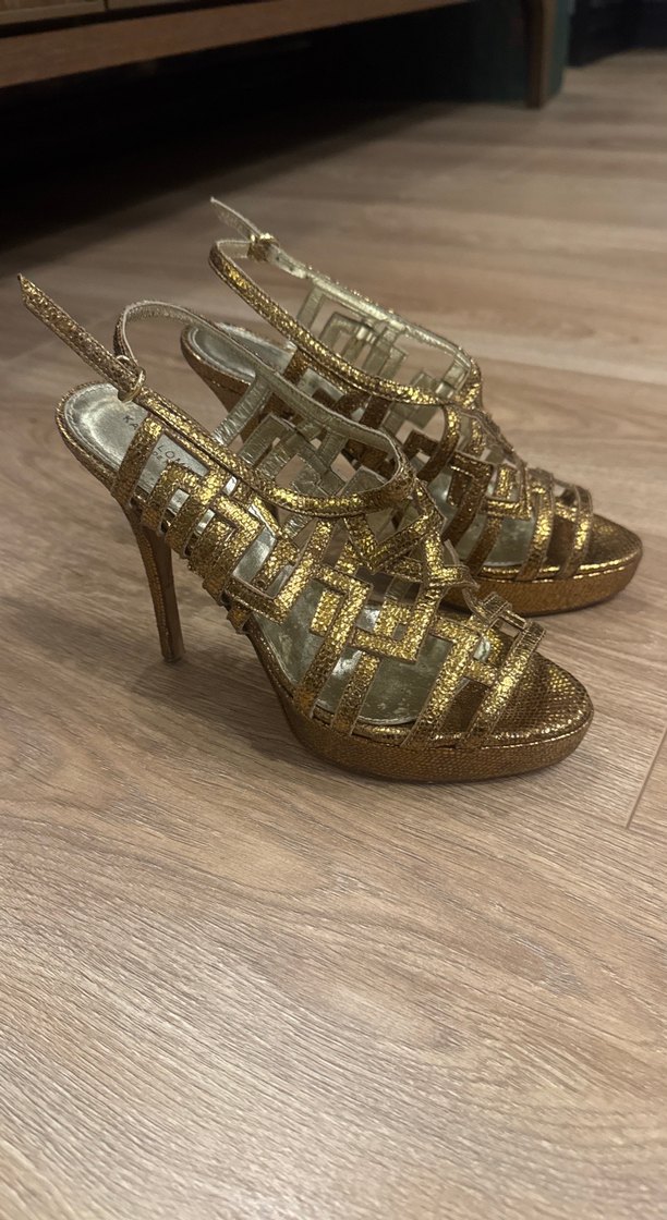Altın Parlak Platform Topuklu Kadın Abiye Ayakkabı