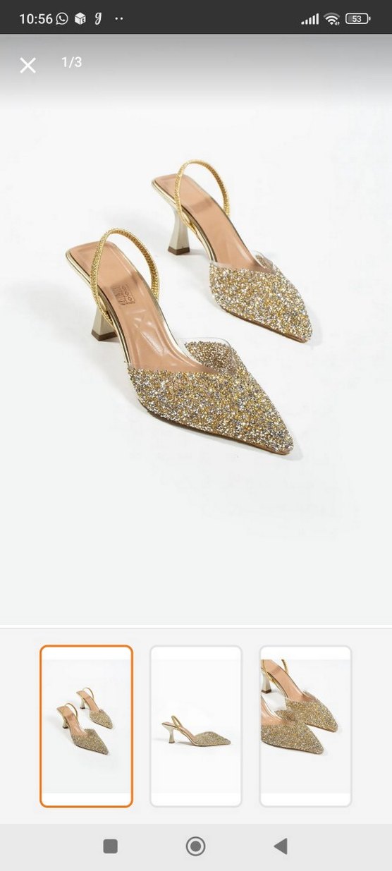 Altın Parlak Stiletto Topuklu Kadın Ayakkabı