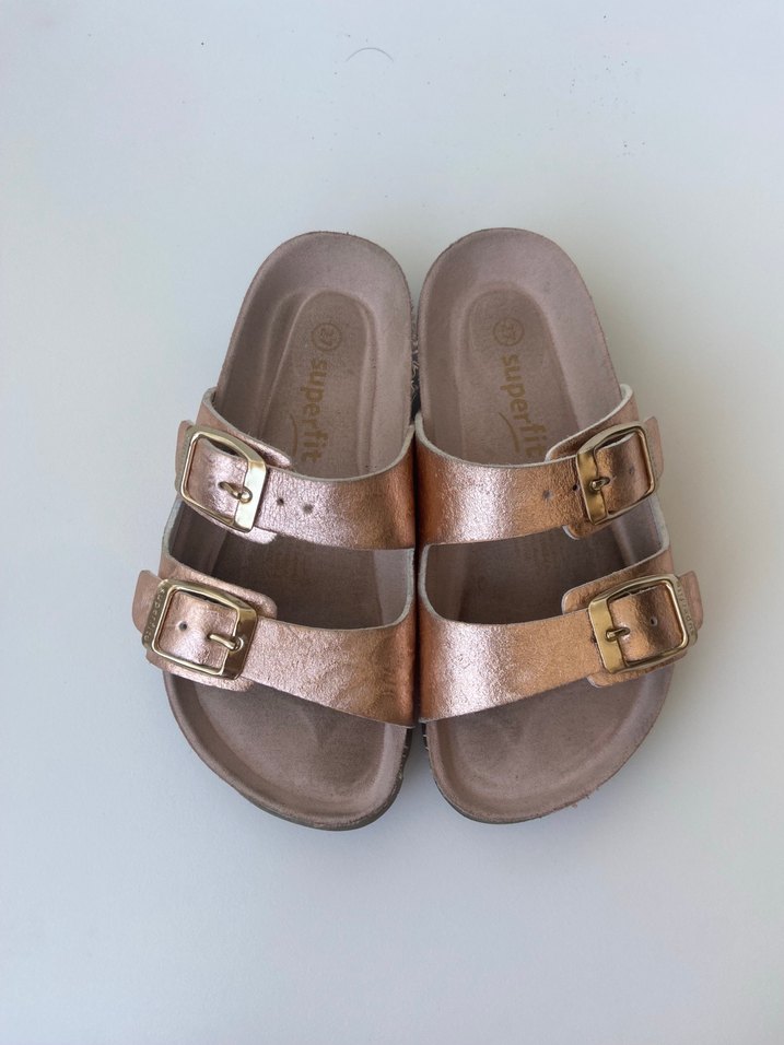 Parlak açık bakır renkte kauçuk terlik, ayarlanabilir tokalı iki bantla bohem ve retro tarzı bir araya getiriyor. Rahat ve şık.