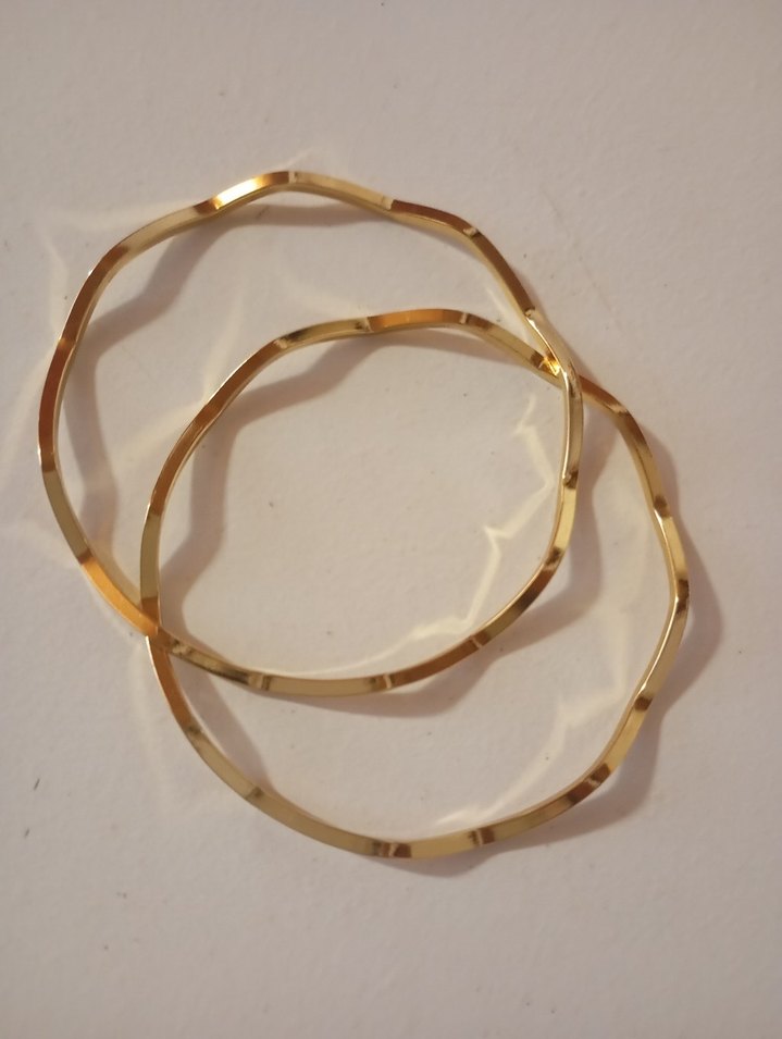 Parlak altın renkli, elastik ve desen içermeyen kadın bilekliği. Minimalist, bohem ve retro tarzlarıyla uyumlu, düğünler için uygun ürün hiç kullanılmadı çelik kararmaz paslanmaz