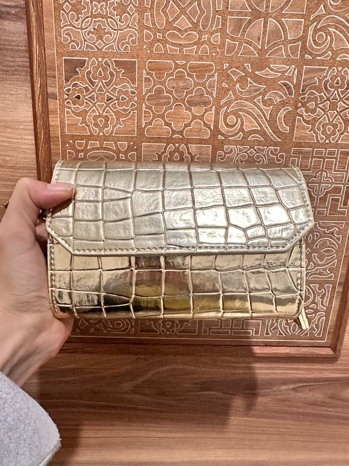 Altın Rengi Deri Yılan Desenli Kadın Çanta