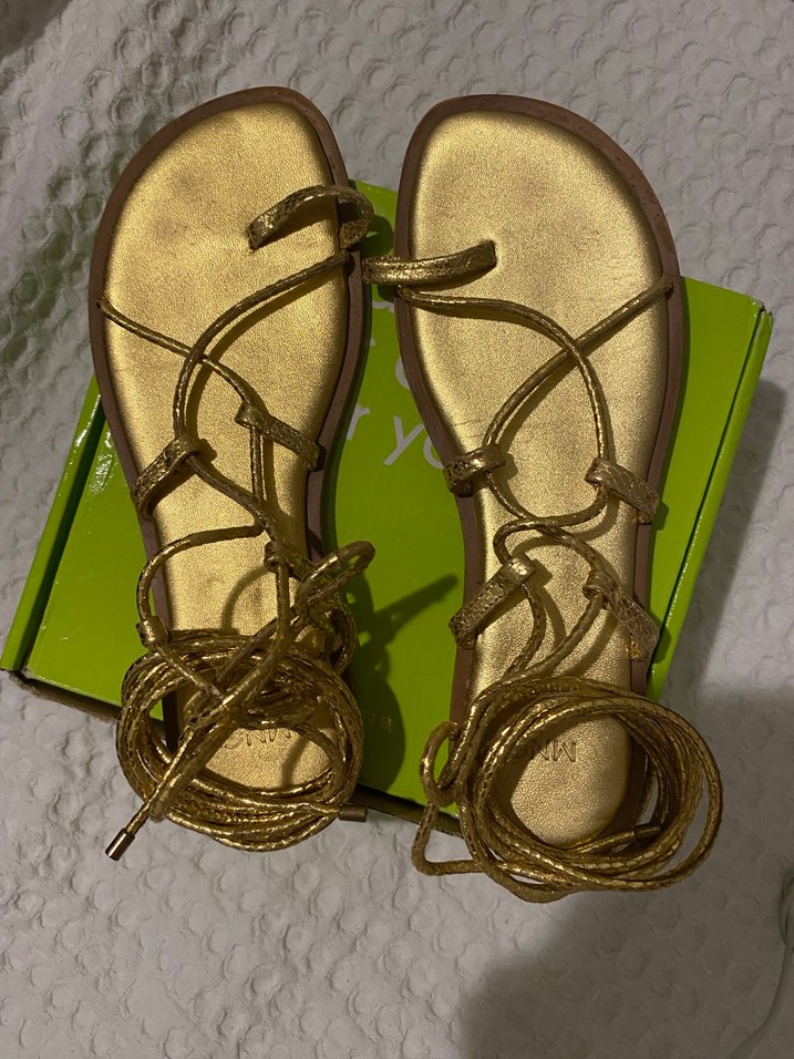 Altın renkli deri yılan desenli stiletto topuklu sandalet, tokalı kayışlara sahip. Romantik gece için bohem tarzda. ✨