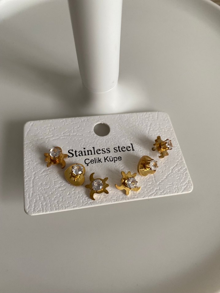 Altın Rengi Mini Parlak Çelik Küpe Seti