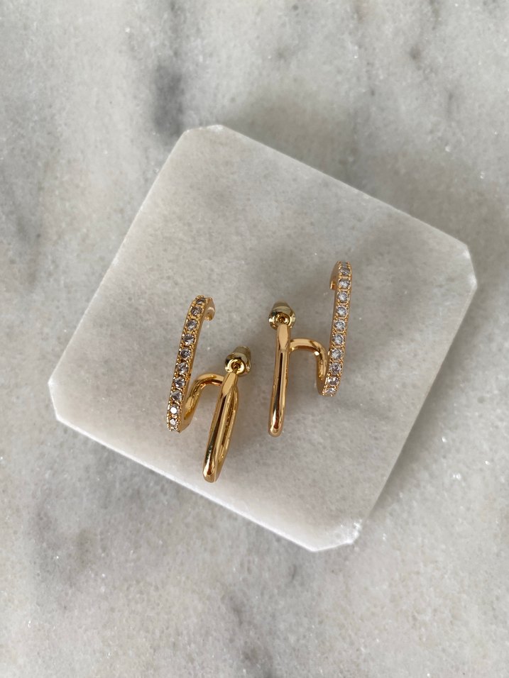 Altın renginde, mini boyda, yılan desenli ve taşlı kısa küpeler, romantik akşamlar için uygun. ✨