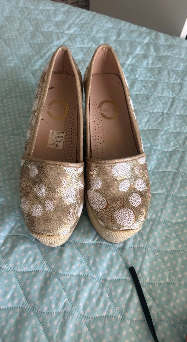 Altın Rengi pul Detaylı Dolgu Topuk Kadın Babet