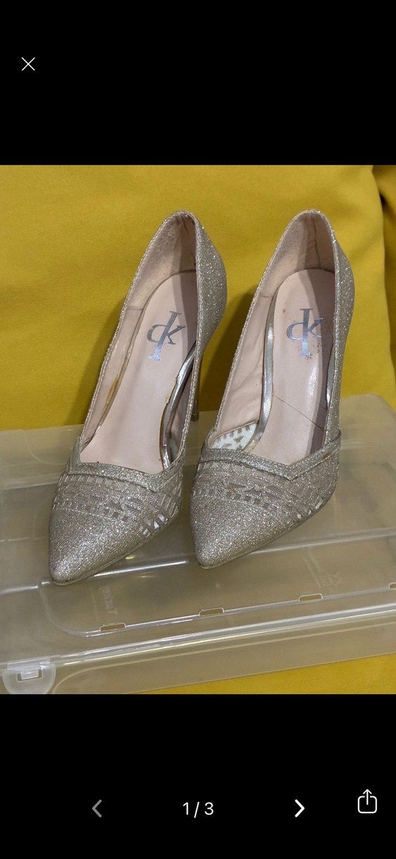 Altın rengi simli ve yılan desenli ince topuklu kadın ayakkabısı, çağdaş tarzda düğün gibi özel anlar için uygundur. Parlak yüzeyli ve rahat kauçuk tabanlıdır.