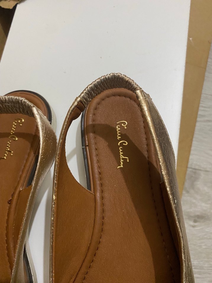 Altın renginde, yılan desenli, dolgu topuklu ve tokalı kadın babet. Rahat kauçuk tabanlı, günlük kullanıma uygun şık bir model.