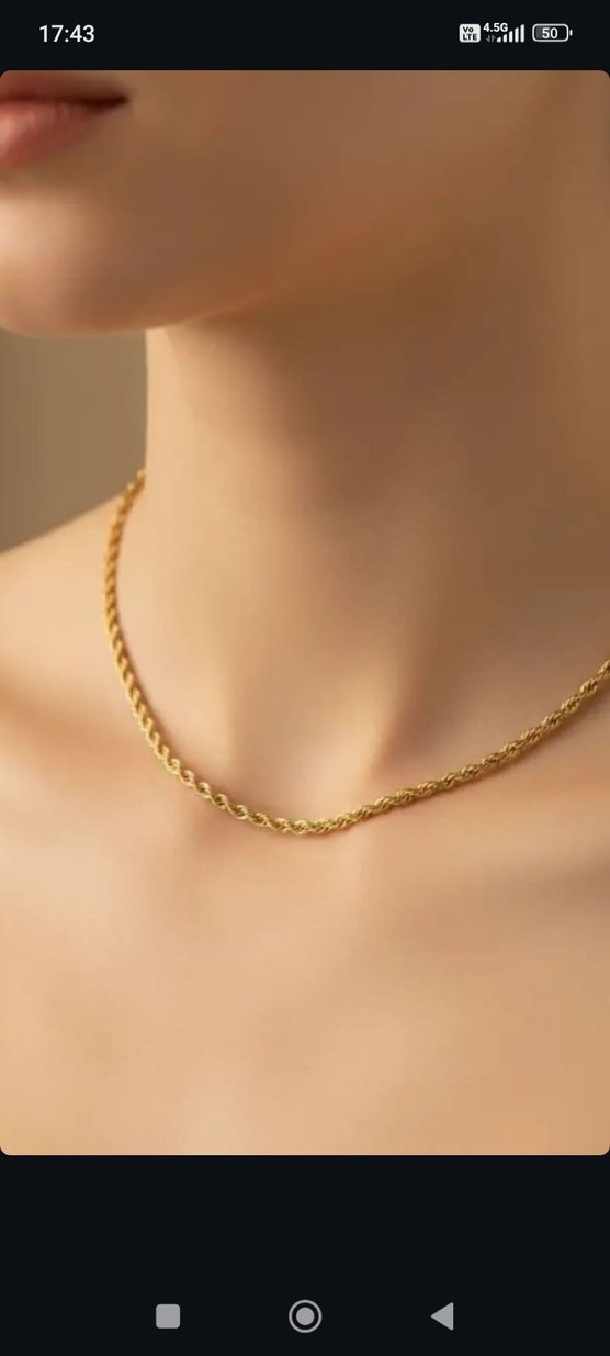 Parlak altın renkli, zincir detaylı midi uzunlukta kolye. Minimalist ve modern klasik tarzda, günlük kullanıma uygun. ✨