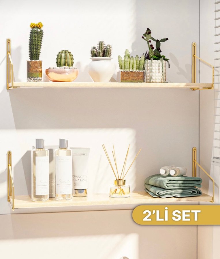 Altın renginde iki parça makyaj organizeri seti, kozmetiklerinizi düzenli tutmak için idealdir. Şık tasarımıyla her ortama uyum sağlar. ✨