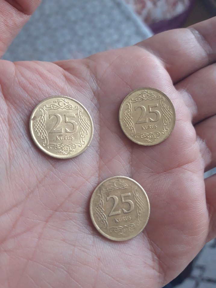 2023 basımlı 3 adet sarı renk 25 kuruş