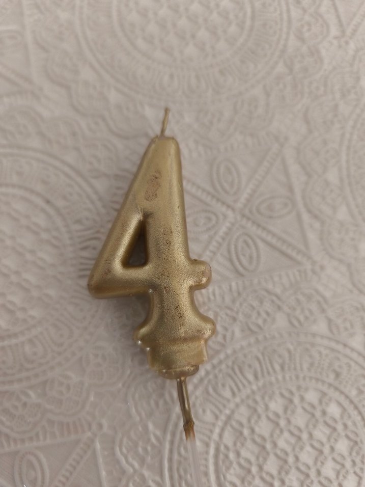 Parlak altın renkli 4 sayısı parti mumu, kutlamalar için fitilli. Her etkinliğe şenlikli bir dokunuş katar. ️sadece bir kez kullanıldı