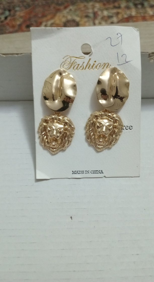 Altın renkli, parlak aslan başı figürlü mini küpeler. Klasik zarafet ve düğünler için uygundur. Çin'de üretilmiştir.