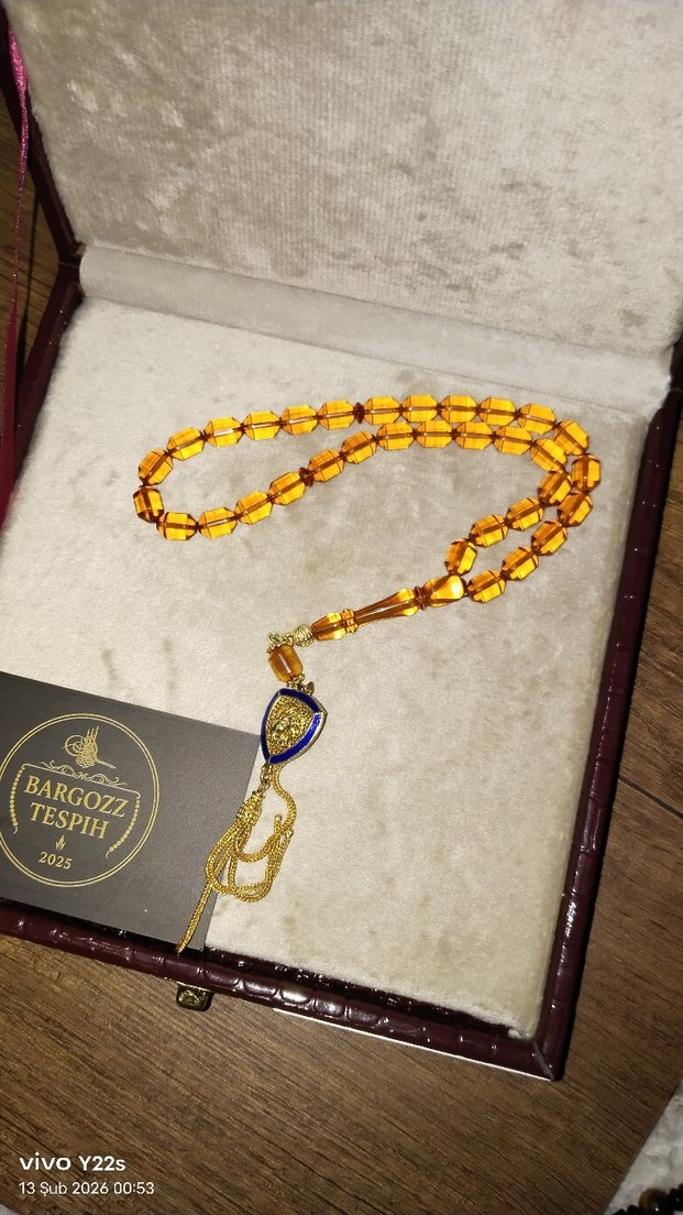 Koyu altın renkli, bohem tarzda erkek tesbih seti. ateş kehribar tesbih