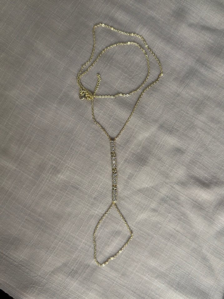 Altın renkli, zincir detaylı ve yılan desenli kadın el zinciri. Bohem ve minimalist tarzda, günlük kullanıma uygun.