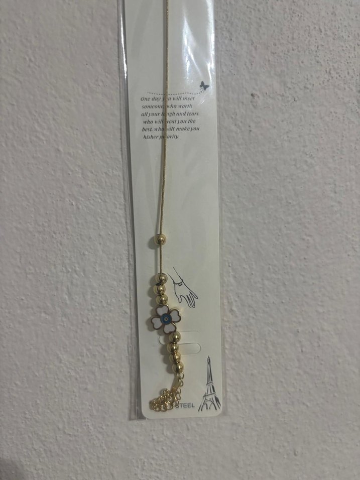 Altın renkli kadın el zinciri, zincir detayları ve baskılı çiçek figürü ile bohem ve retro tarzını yansıtır. Paris esintili, hafif ve günlük kullanıma uygun.