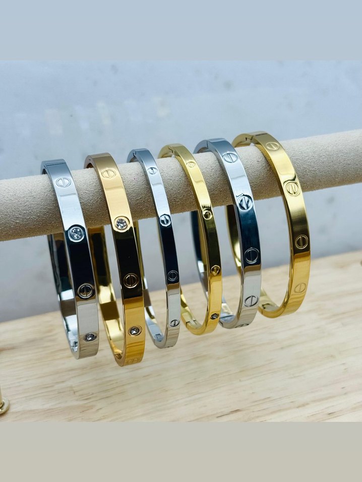 Günlük kullanıma uygun, altın ve gümüş tonlarında elastik, minimalist desen içermeyen çağdaş bileklikler.