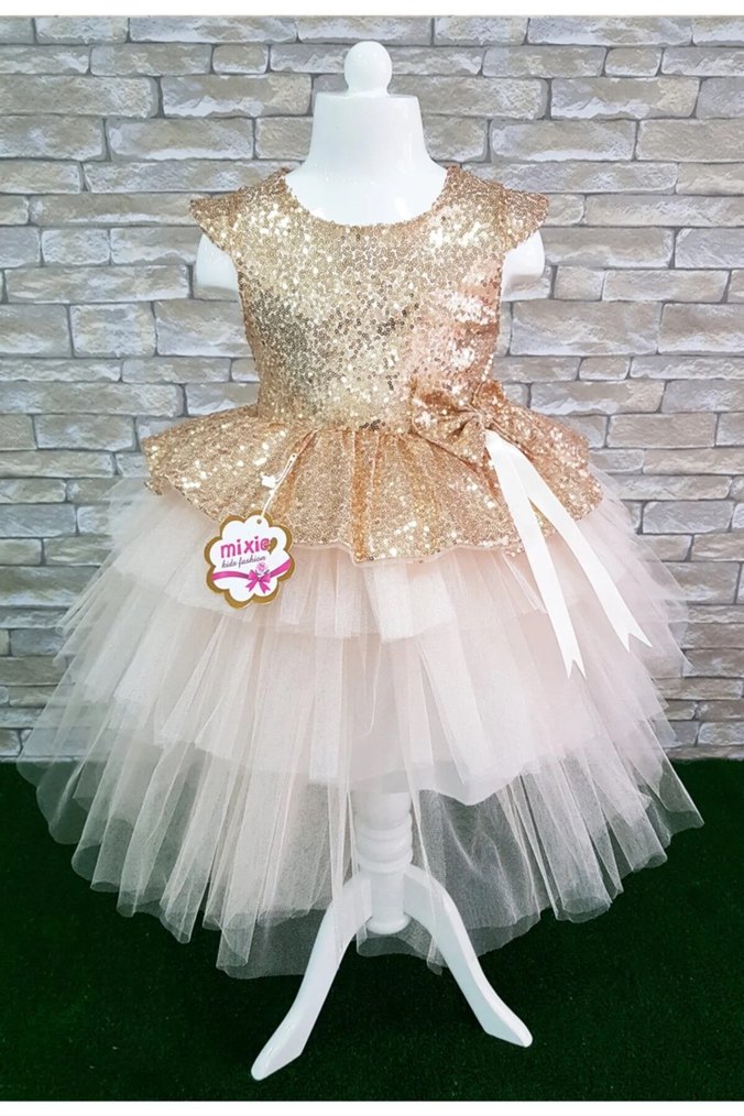 Altın Renk Fırfırlı Kız Çocuk Elbise