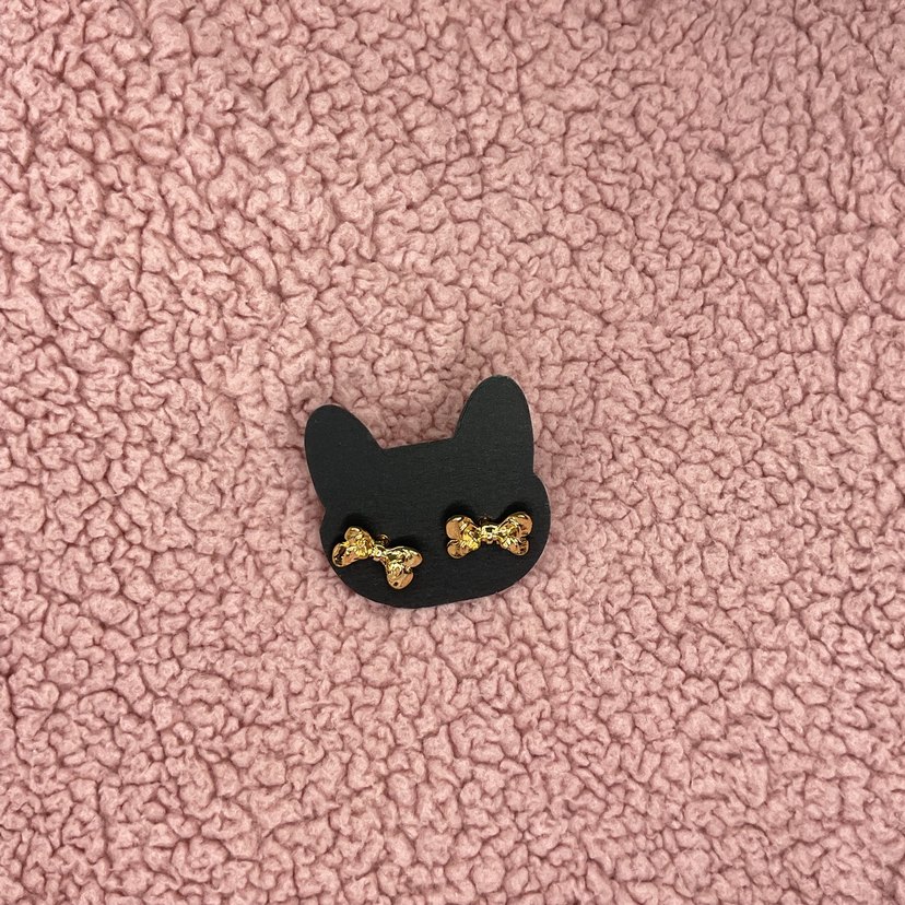 Mini fiyonk detaylı, altın renkli ve kısa küpeler. Rahat ve gotik tarzları birleştirir, romantik akşamlar için uygundur.