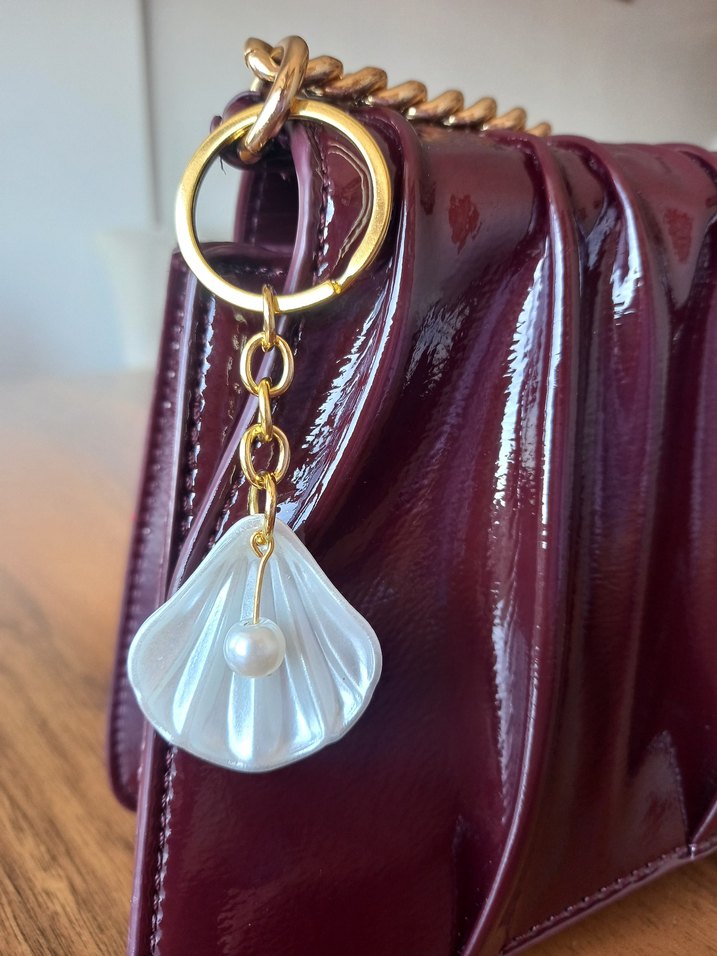 Parlak altın renkli, inci ve minimal bohem tarzda kadın anahtarlığı, klasik zarafet için uygun. isteğe bağlı söz, nişan vs için toplu sipariş alınır el yapımı kişiye özeldir ✨️