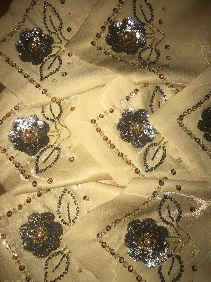 Benim el emeğimdir . Parlak altın renkli el işlemeli çiçek desenleriyle bohem tarzda şık bir görünüm sunar.