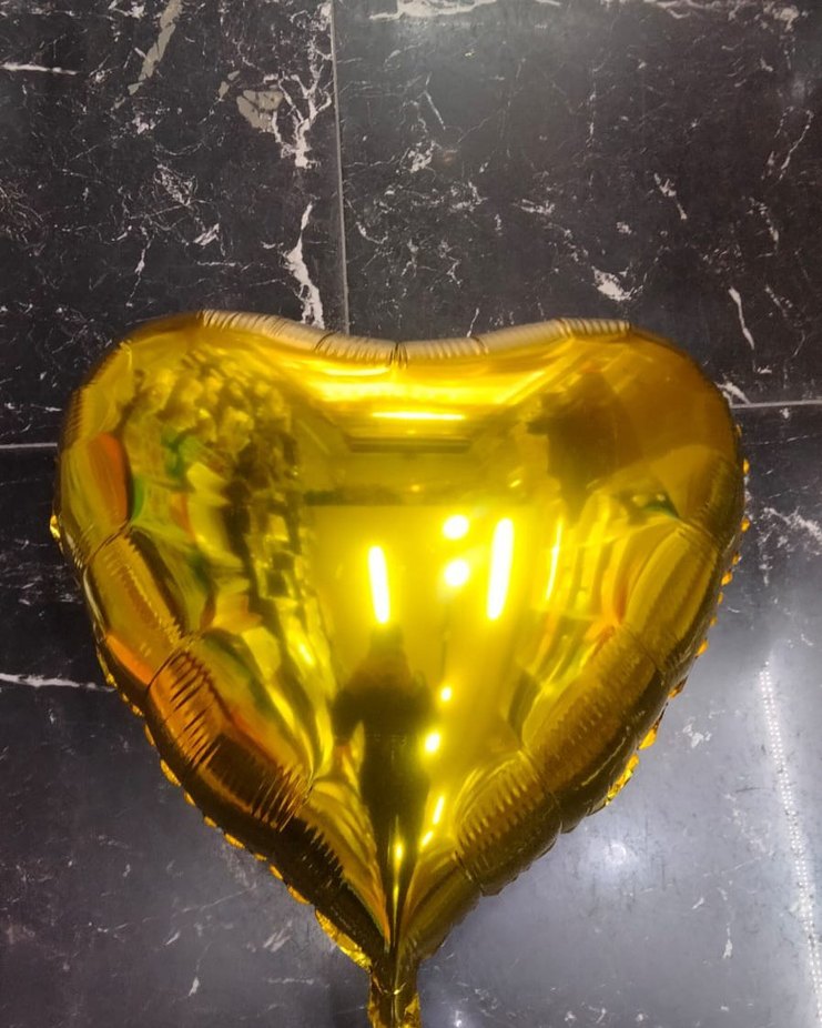 Parlak altın renk kalp şeklinde folyo balon, parti süslemeleri için uygundur. Yansıtıcı yüzeyi kutlamalara renk katar.