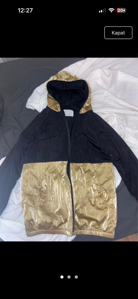Altın Renk Kapüşonlu Midi Erkek Çocuk Ceket