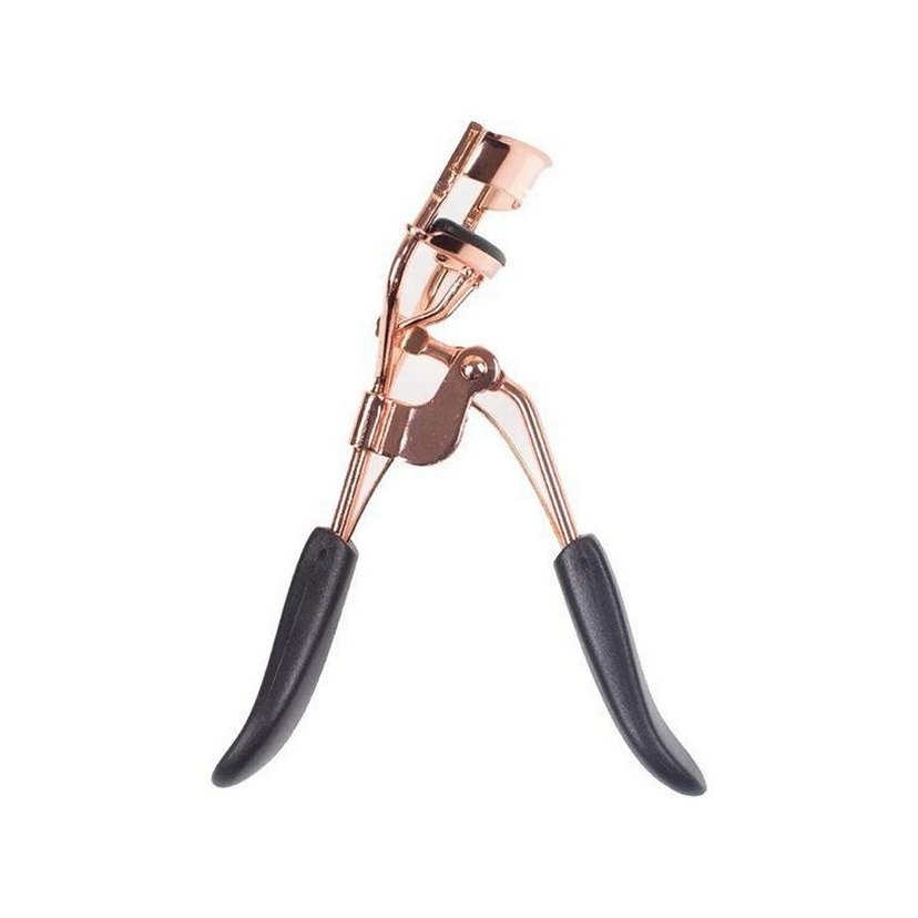 Altın renkli, siyah kulplu kirpik kıvırıcı. Keskin kıvırma için tasarlanmış, yumuşak tutuşlu ve koyu parlak yüzeye sahip.