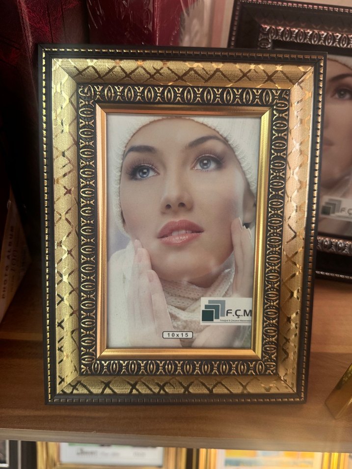 10x15 cm fotoğraflar için dekoratif desenli altın renk koyu çerçeve. renkleri bulunur