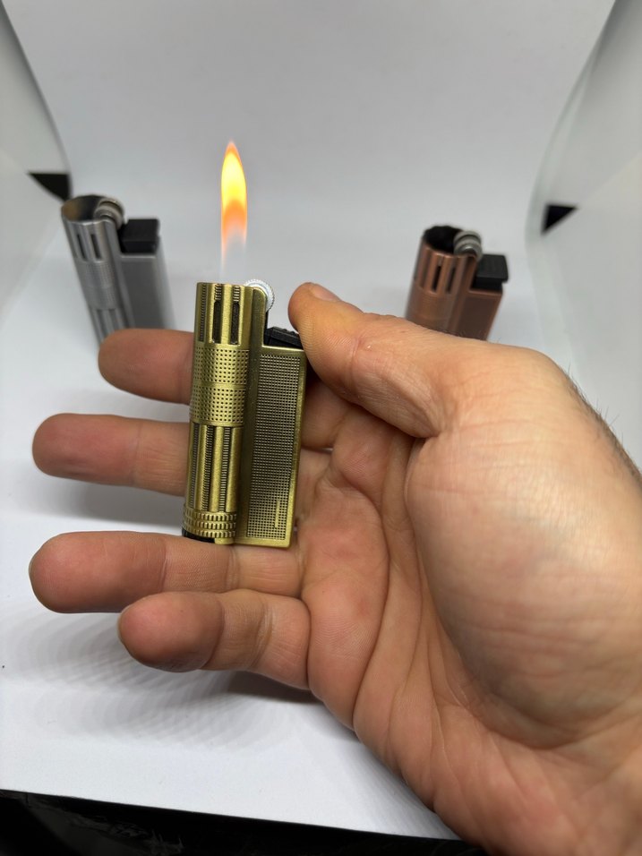 Altın renkli metal çakmak, vintage tasarımlı ve sabit alev çıkarır, hediye olarak uygundur .