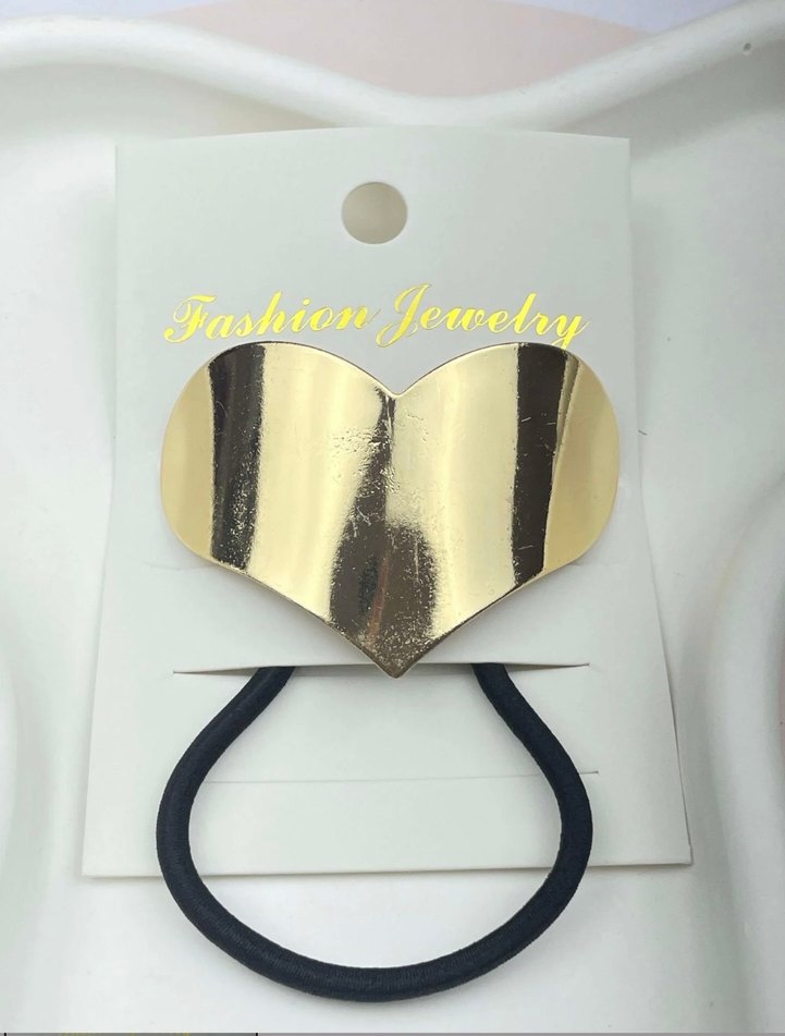 Altın renk metal kalp şeklinde saç aksesuarı, elastik bantla birleştirilmiş cesur ve çağdaş Paris tarzını yansıtıyor.